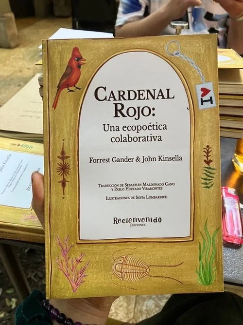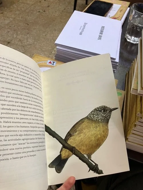 Redstart es el título en inglés de este libro. El nombre proviene de una especie de pequeñas aves paseriformes que principalmente habitan en Europa, Asia y África. Como podrán notar a lo largo del texto, en estas páginas vuelan un sinnúmero de aves. No solo aparecen como objeto de contemplación o como recurso temático: ayudan a co-crear parte de la estructura y la manera de poetizar que este libro propone. En ese sentido, el título nos parecía de gran importancia. El nombre Redstart lleva en sí mismo la idea de un nuevo comienzo, pero su color rojo también alude a una señal de peligro. A fin de cuentas, todos los inicios producen un poco de miedo. El nombre común de tales aves en español es “colirrojo”. Para lograr mantener parte de las ideas e imágenes que evoca la palabra redstart en inglés, decidimos utilizar el nombre de otra ave paseriforme: el car- denal. Esta especie es endémica del continente americano y es reconocida por su brillante color rojo. Si bien el nombre traza una metáfora con la posición eclesiástica, en su origen etimoló- gico encontramos la palabra latina cardinalis, cuyo significado es “principal” o “fundamental.” Antes de eso, está el origen griego cardō, que puede ser traducido como “unión” o “bisagra”. Los cardenales nos recuerdan que los inicios no surgen en el vacío y que, frecuentemente, la creación de otros futuros depende de proponer nuevos vínculos entre el pasado y el presente.